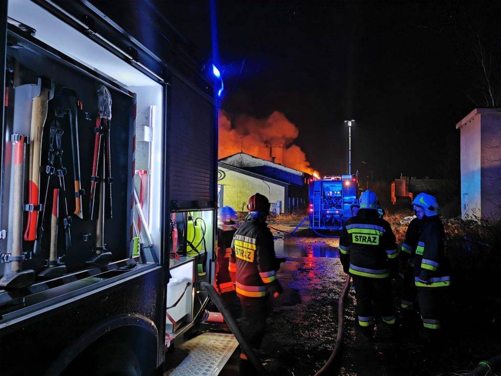 Według relacji świadków płomienie mogły sięgać nawet dwudziestu metrów. Na miejscu trwa akcja gaśnicza, w której biorą udział prawie wszystkie zastępy OSP, oraz zastępy Państwowej Straży Pożarnej. W pobliżu płonącego budynku znajduje się parking tirów, budynki różnych firm, a także miejsce przeróbki odpadów. Deszczowa aura nie ułatwia akcji gaśniczej. Sytuacja jeszcze nie jest opanowana.