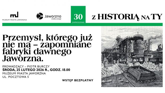 30. wykład z serii „Z Historią na Ty” pt. „Przemysł, którego już nie ma – zapomniane fabryki dawnego Jaworzna” odbędzie się w środę – 25 lutego – o godz. 18:00 w siedzibie Muzeum Miasta Jaworzna, przy ul. Pocztowej 5. Wstęp bezpłatny!