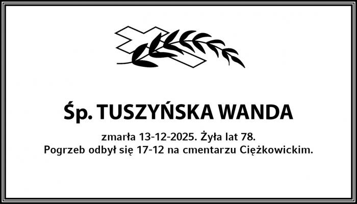 zmarła 11-12-2025. Żyła lat 93. Pogrzeb odbył się 16-12 na cmentarzu parafialnym na Osiedlu Stałym.