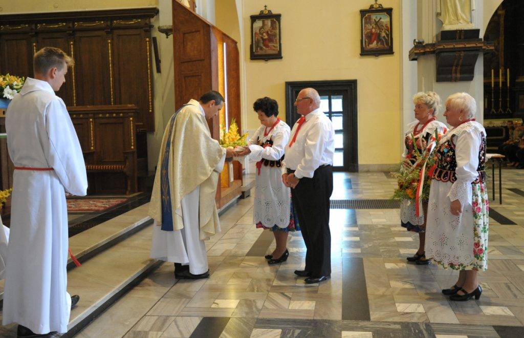 Uroczystości Wniebowzięcia NMP w jaworznickiej kolegiacie, dary ołtarza składa zespól śpiewaczy Jaworznianki, 2016 r.[/caption]Ela Bigas