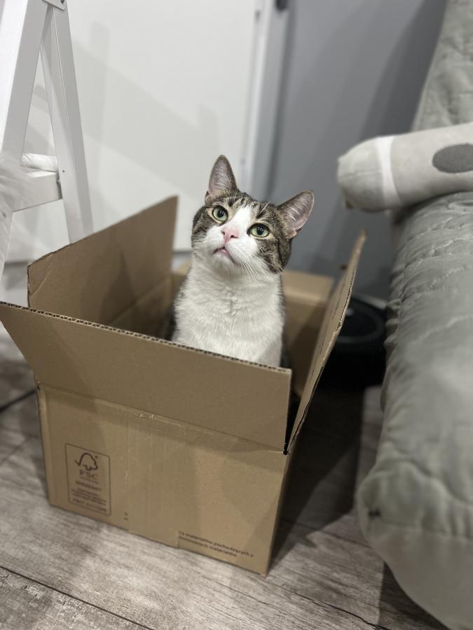 Mamy jeszcze kotkę Fetę, ta ostatnio zastanawia się nad skosztowaniem domowej paprotki, zamiast saszetki z kurczakiem.