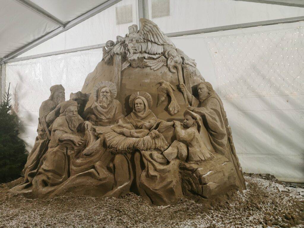 [caption id="attachment_240108" align="aligncenter" width="640"] Szopka wykonana w tym roku z bałtyckiego piasku przez studentów gdańskiej ASP, do jej stworzenia wykorzystano 90 ton pisku[/caption]