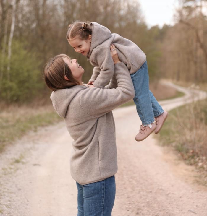 Kurtka z wełny merino oraz kurteczka dziecięca z wełny merino dark beige - zdjęcie Merinowca.pl