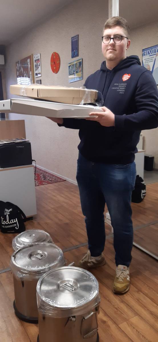 Punktualnie o godzinie 11.00 Bartłomiej Lebiocki z Mega Pizzy na Starej Hucie przywiózł gorący orkiestrowy bigos i bułeczki. A wszystko to dla tych, co zmarznięci stoją z puszką na ulicach miasta. Zapraszamy do sztabu do godz. 15.00.