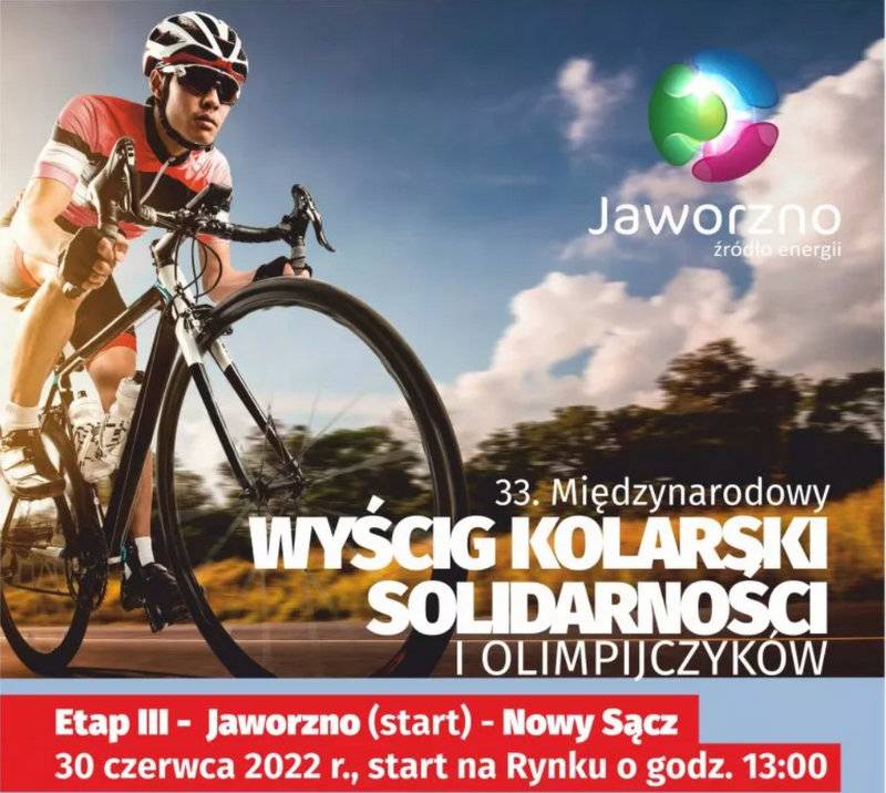 Jaworzno będzie jednym z miast startowych 33. Międzynarodowego Wyścigu Kolarskiego „Solidarności” i Olimpijczyków, który będzie miał miejsce 30 czerwca bieżącego roku. Kolarze wyruszą z Rynku, gdzie odbędzie się start honorowy około godziny 13:00, następnie przejadą prawie 4 kilometry pętlę honorową wokół Rynku, po czym ruszą ze startu ostrego w kierunku Chełmka. Meta tego etapu zlokalizowana jest aż w Nowym Sączu. W wyścigu weźmie udział 25 zespołów z Polski i zagranicy, a trasa zawodów będzie liczyć w sumie 772 kilometry. Głównym organizatorem jest Region Ziemia Łódzka NSZZ „Solidarność.