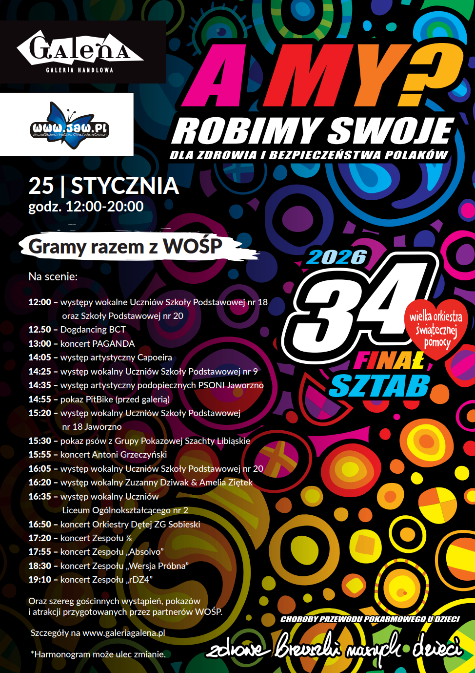Tegoroczny finał zapowiada się jako wydarzenie pełne muzyki, pokazów i pozytywnej energii, a przede wszystkim okazja do wspólnego wspierania szczytnego celu Wielkiej Orkiestry Świątecznej Pomocy. W tym roku zbiórka odbywa się pod hasłem: Zdrowe brzuszki naszych dzieci.