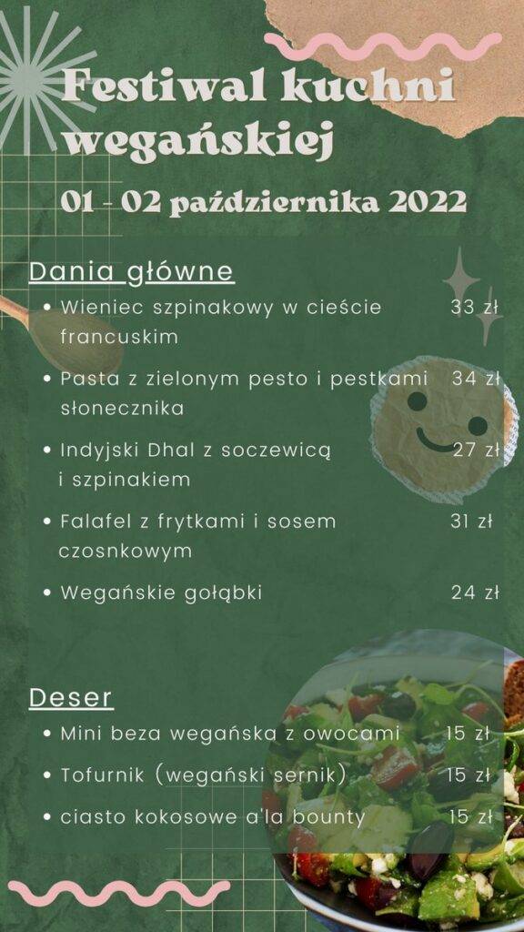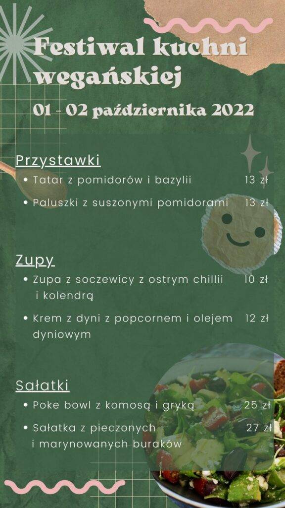 Pokochaj wegańską kuchnię z 7Niebo Bistro. Restauracja przygotowała specjalnie skomponowane menu na te dwa dni. Znajdziemy w nim między innymi zupy, dania główne i desery.