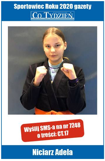 Jeśli chcesz, żeby Adela Niciarz została Najpopularniejszym Sportowcem Roku 2020 w Jaworznie, wyślij SMS na nr 7248 o treści CT.17 lub wypełnij prawidłowo kupon, dołączany do gazety Co Tydzień i dostarcz go do redakcji. Głosujemy do 6 kwietnia.