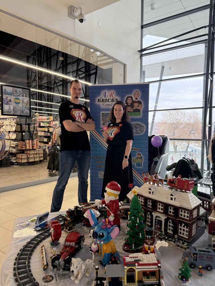 Mamy również taką małą wystawę z zimowej wioski Air Bricks Family, z najświeższym zestawem – można powiedzieć, że jeszcze ciepłym – dom Kevina czy dom McCallisterów. Z kultowej komedii, którą chyba każdy zna. Wiadomo, po wiosce musi jeździć pociąg, więc u nas też jeździ. Dookoła są gadżety dla dzieciaków: naklejki, wizytówki, zakładki - mówi Rafał Kurowski.
