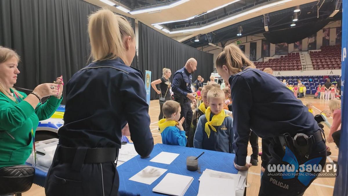 Funkcjonariusze przygotowali również stoisko profilaktyczne. Na nim prezentowany jest sprzęt oraz przybliżana jest działalność policji, a także dzieci mogą zebrać własne odciski palców.