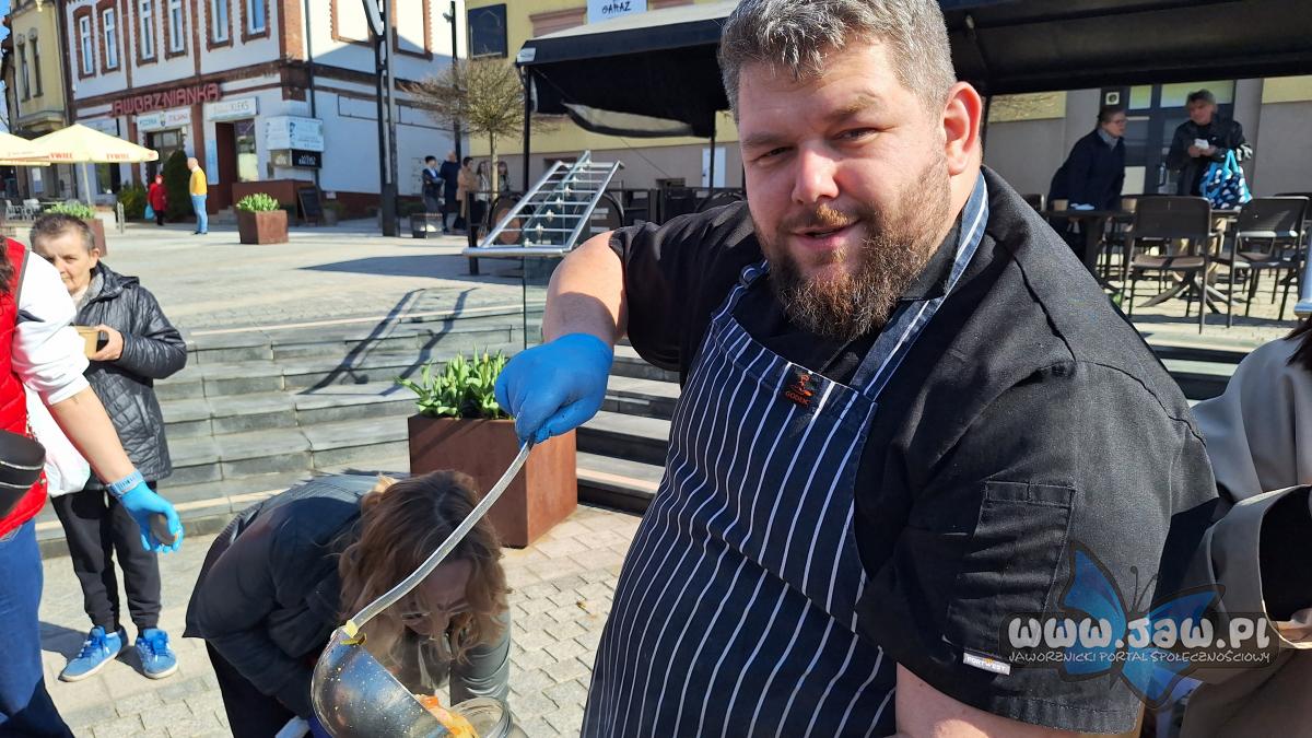 Jak przekonuje pan Marcin grochówkę „pokochali Jaworznianie”. W piątek pół dnia wszystko krojono, a w sobotę od 5 rano gotowano. W żurku wielkanocnym biała kiełbasa, warzywa, boczek, cebula i zakwas. - Zakwas jest nasz, chrzan jest również przez nas robiony, staramy się, żeby wszystko było jak najbardziej naturalne – zdradza tajniki kuchni pan Marcin.