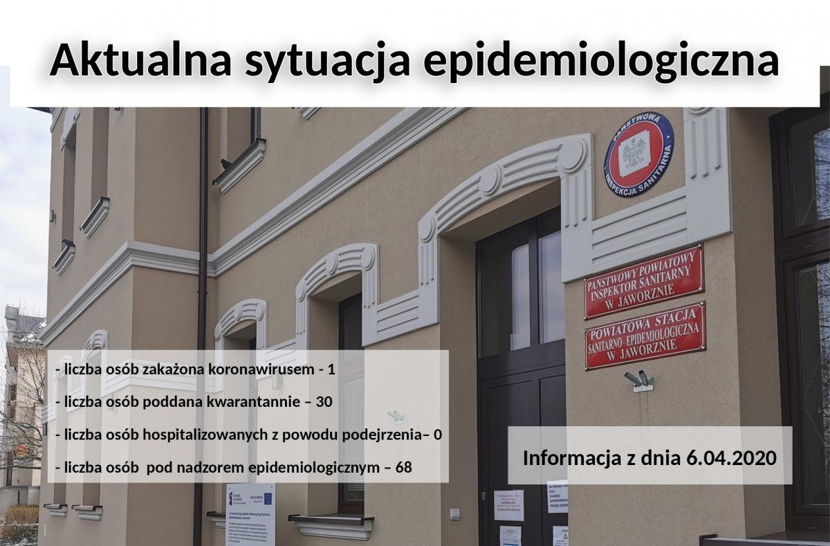 W związku z polityką informacyjną na temat koronawirusa SARS-CoV-2, Państwowy Powiatowy Inspektor Sanitarny w Jaworznie przekazuje informacje na temat aktualnej sytuacji epidemiologicznej w dniu 06 kwietnia 2020: