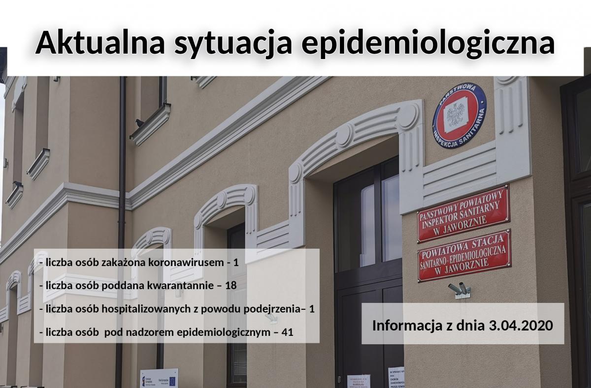 Jak możemy przeczytać w komunikacie Powiatowej Stacji Sanitarno-Epidemiologicznej w Jaworznie, w mieście obecnie potwierdzono jeden przypadek zakażenia koronawirusem. Decyzją sanepidu osoba ta przebywa w izolacji domowej.