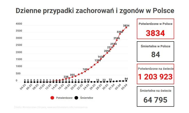 - Z przykrością informujemy o śmierci kolejnych pięciu osób zakażonych koronawirusem. Są to: 41-letnia kobieta i 84-letni mężczyzna ze szpitali w Krakowie, 71-letni mężczyzna ze szpitala w Poznaniu, 77-letnia kobieta ze szpitala w Bolesławcu i 59-letni mężczyzna ze szpitala w Polanicy-Zdroju – informuje Ministerstwo Zdrowia.