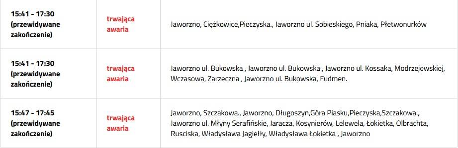 Awarie energetyczne na terenie Jaworzna 11 sierpnia
