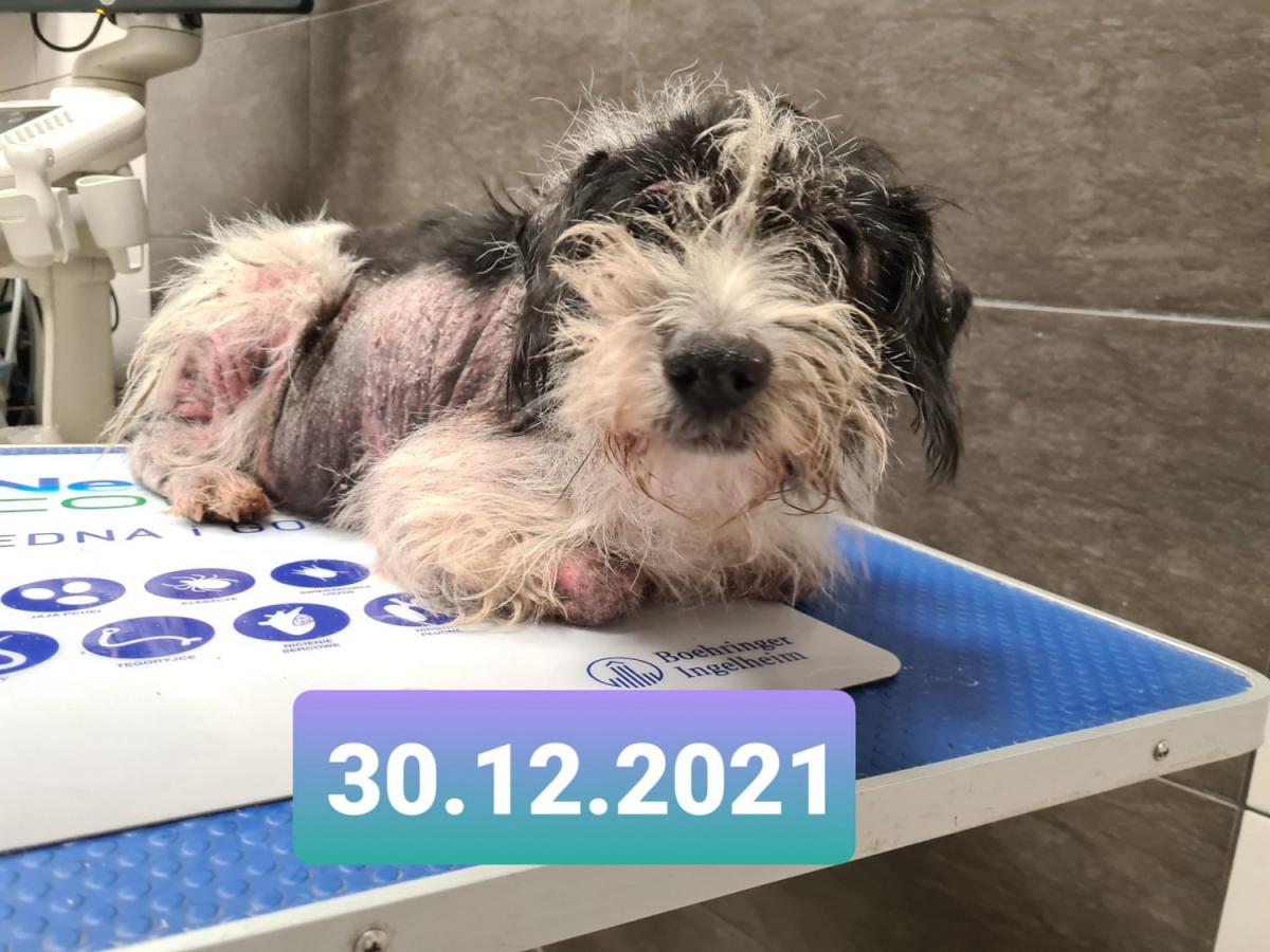 Stasiu, trafił do schroniska w Chełmku pod koniec grudnia 2021 roku. Kundelek ma za sobą długie leczenie świerzbu i zapalenia skóry na całym ciele. Piesek aktualnie zmaga się z chorobą o nazwie Zespół Cushinga.