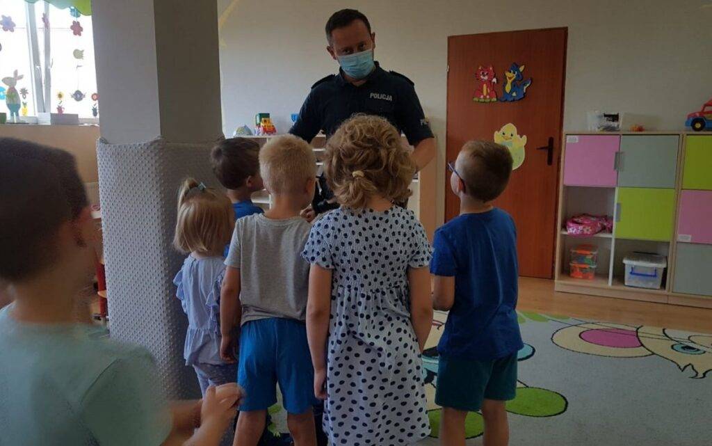 W ramach „Bezpiecznych wakacji” jaworzniccy policjanci organizują spotkania z dziećmi i młodzieżą spędzającymi letni wypoczynek w mieście. Tym razem odwiedzili maluchy z Przedszkola Wesołe Przedszkolaki w Jaworznie. Tematem przewodnim było jak bezpiecznie spędzić wakacje.