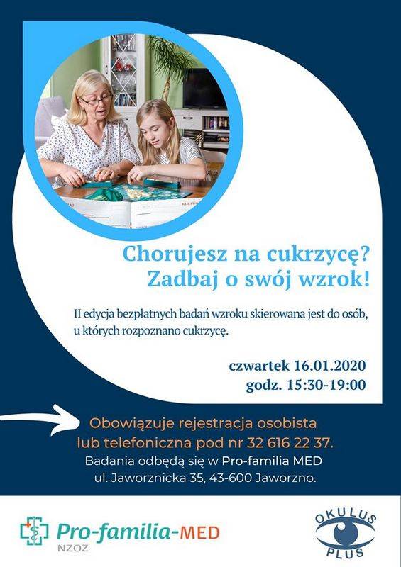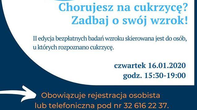 Zapraszamy wszystkie osoby chorujące na cukrzycę na bezpłatne badania wzroku.