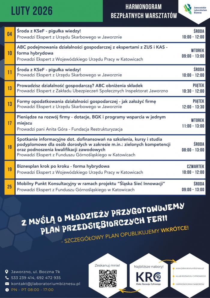 HARMONOGRAM BEZPŁATNYCH WARSZTATÓW LUTY 2026