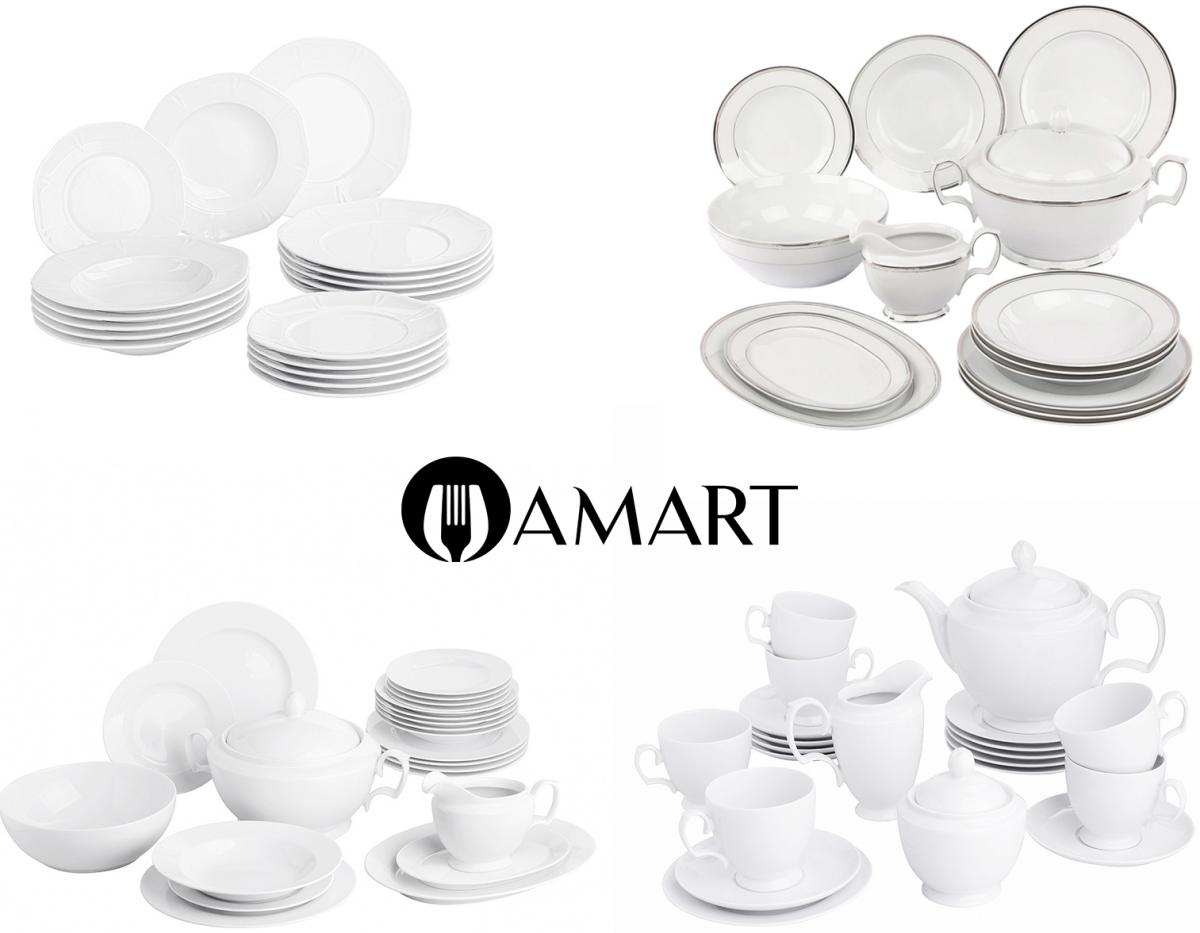Klasyczna porcelana nie musi odznaczać się okrągłym kształtem talerzy i prostą formą uchwytów, jak pokazują w swoich propozycjach projektanci porcelany MariaPaula serwisy obiadowe i kawowe mogą mieć też kwadratowy, opływowy czy geometryczny kształt. W naszym sklepie Amart.pl znajdziesz szeroki wybór porcelanowej zastawy. Wybierz więc tę, która najpiękniej będzie zdobić Twój stół i Twoje przyjęcia.