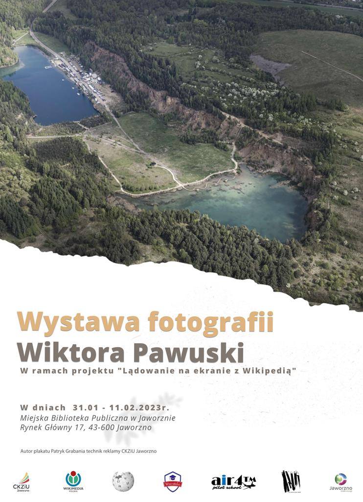 Autorem zdjęć, przedstawiających nasze miasto z lotu ptaka, jest Wiktor Pawuska – uczeń IV klasy technikum o kierunku fotografia i multimedia, jaworznickiego Centrum Kształcenia Zawodowego i Ustawicznego, który pod opieką mgr Anny Kosobuckiej, brał udział w projekcie pn. Lądowanie na ekranie z Wikipedią. Zgodnie z założeniami programu, wykonane przez niego fotografie zostały umieszczone w wolnej encyklopedii na licencji Creative Commons. Efekty jego pracy można zobaczyć na wystawie w Bibliotece Głównej. Uroczysty finisaż, podsumowujący projekt odbędzie się 7 lutego br. o godz. 17.00.