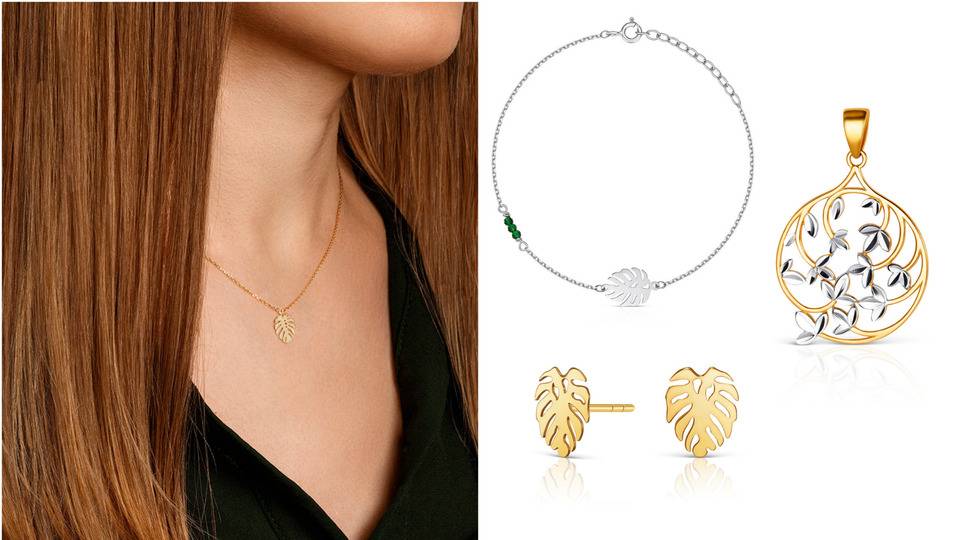 Niezmiennie prym wiodą liście i kwiaty. Różnorodność form sprawia, że biżuteria z tymi motywami ciągle nas zaskakuje. Nie sposób się nią znudzić. Liście jako symbol między innymi życia, natury i nadziei, zamknięte w formę biżuterii, dodają lekki zew natury naszym stylizacjom. Nosimy je w różny sposób, najczęściej wybierając szczęśliwe koniczyny, paprocie, czy modne monstery. Klasyczny wzór, czy zarys liścia, nosimy w formie ażurowych blaszek, fantazyjnych kształtów, czy bogato wysadzanych kamieniami form. Kolczyki, bransoletki, naszyjniki, zawieszki… wręcz każdy rodzaj biżuterii oferuje nam spory wybór modeli z motywem liści.