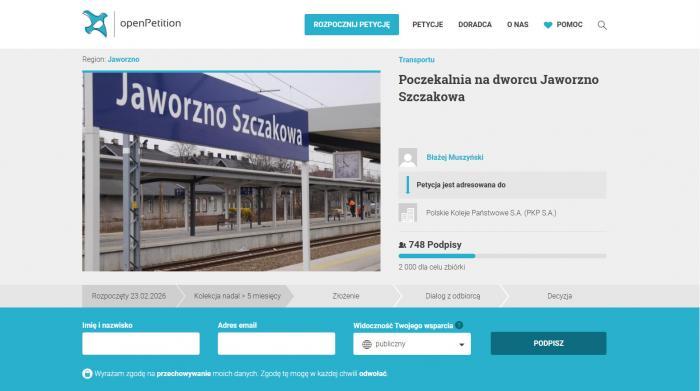 Nieco ponad tydzień temu Błażej Muszyński opublikował petycję i zbiera podpisy, bo chce nakłonić spółkę PKP do otworzenia poczekalni na dworcu w Szczakowej. W ciągu 7 dni swój podpis pod petycją online złożyło już ponad 900 osób.