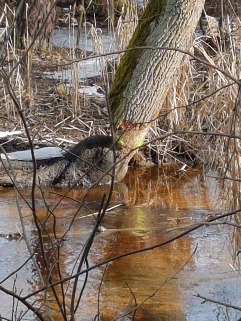 Niestety, nad Łużnikiem nie udało nam się spotkać samych bobrów, ale za to ślady ich bytowania - jak najbardziej. Możemy zobaczyć żeremia zbudowane przez zwierzęta czy też ścięte drzewa - prawdopodobnie zalążki przyszłych tam czy też nieudane próby ich budowy.