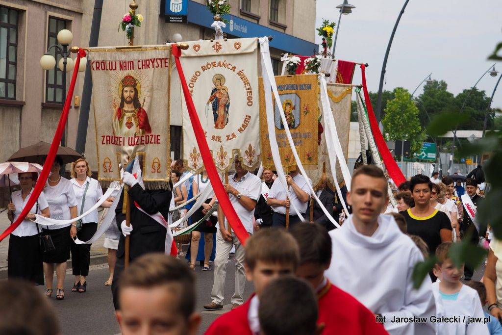 Procesja wyruszy po mszy św. o 9.00, przejdzie jak co roku fragmentem ul. Zwycięstwa do Rynku i z powrotem do Kościoła.