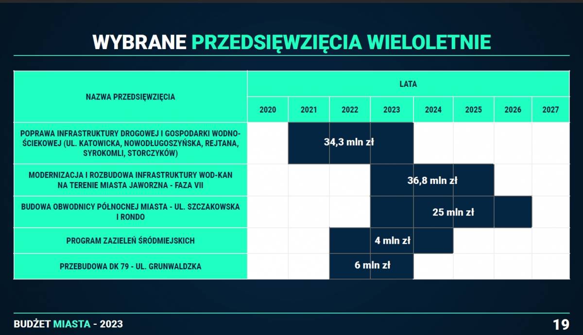 Jak zapewnia urząd, trwające już inwestycje nie są zagrożone. A w mieście dzieje się sporo. Obecnie trwa m.in. przebudowa DK 79 w Jaworznie Byczynie, której koszt to 35,5 mln zł, przebudowa ul. Katowickiej za ponad 18,5 mln zł, modernizacja i przebudowa infrastruktury wodno-kanalizacyjnej za blisko 29 mln zł. Prawie 36 mln zł przeznaczone zostanie na inwestycje w budowę instalacji OZE w 11 miejskich placówkach oświatowych (wkład gminy - 6 mln zł).