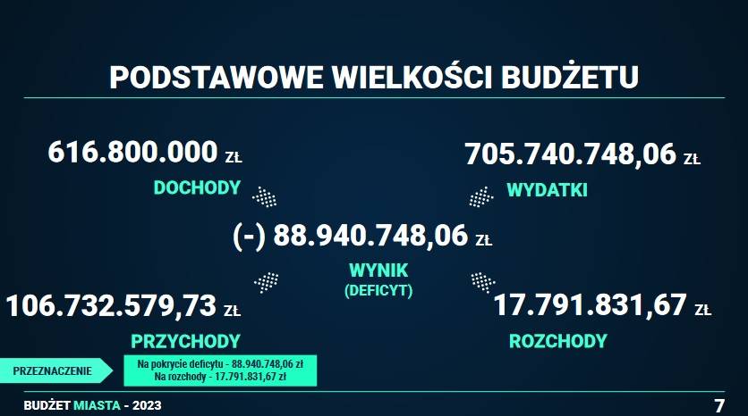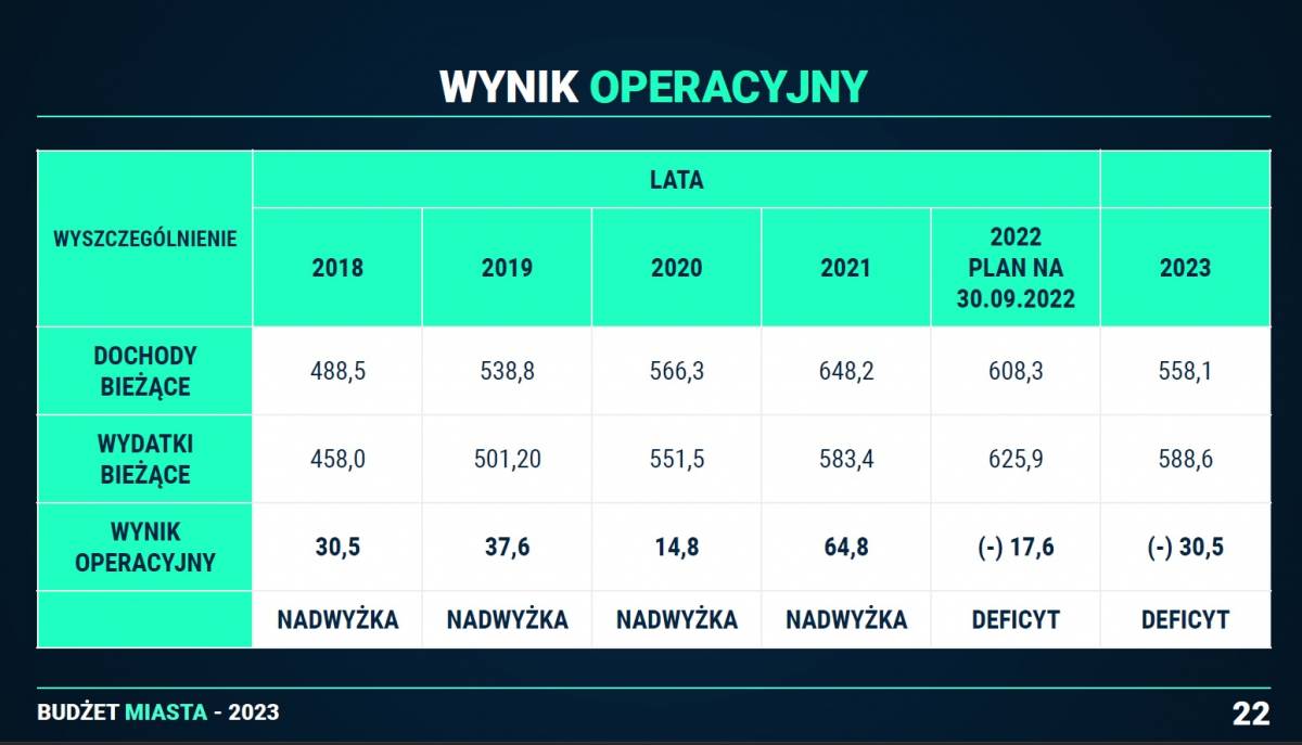 Jak łatwo policzyć, deficyt ma w przyszłym roku osiągnąć poziom 88,9 mln zł. Gmina podaje kilka powodów, które spowodowały takie, a nie inne braki w budżecie. Wśród nich wymieniane są przekazanie zadań rządowych realizowanych dotychczas przez gminy (np. wypłatę świadczeń 500+ od 2023 roku realizować będzie ZUS; w 2022 r. wypłacano również dodatki węglowe, energetyczne – zadania jednorazowe i jednoroczne).