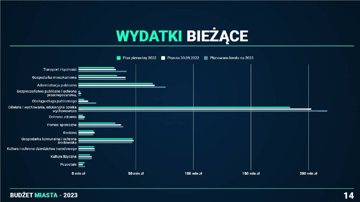 Urząd informuje również o drastycznym wzroście kosztów oświaty i edukacji (z 205 mln zł w 2022 do 254,8 mln zł w 2023), kosztów transportu miejskiego oraz gospodarki mieszkaniowej i komunalnej.