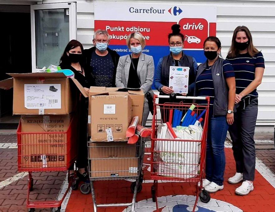 Pracownicy sklepu Carrefour w Osiedlu Stałym przekazali przekazali ofiarowane przez klientów i pracowników sklepu produkty jaworznickiemu domowi dziecka.