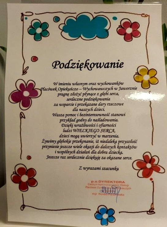 Jaworznianie po raz kolejny nie zawiedli, chętnie wspomagając zbiórkę na rzecz domu dziecka – delegacja pracowników sklepu mieszczącego się przy ul. Wojska Polskiego 2D przekazała zawartość kilku sklepowych wózków. Wśród ofiarowanych rzeczy były artykuły szkolne, słodycze, środki czystości oraz żywność.