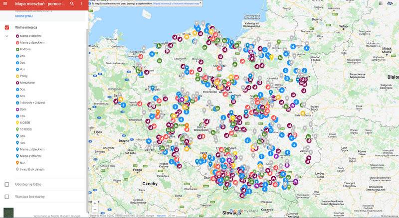 Mapa mieszkań powstała w internecie, aby ułatwić rozlokowania i znajdowanie miejsc, gdzie ukraińscy uchodźcy mogą znaleźć dla siebie miejsce. Co ważne każdy może do niej dołączyć i zaoferować lokum.