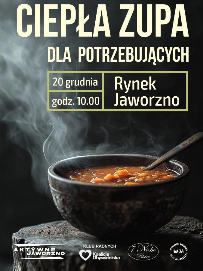 Na rynku w Jaworznie odbędzie się charytatywna akcja o nazwie „Ciepła zupa dla potrzebujących”. Kilka dni przed Świętami Bożego Narodzenia m.in. osoby w kryzysie bezdomności będą mogły zjeść ciepły posiłek i otrzymać potrzebne wsparcie.