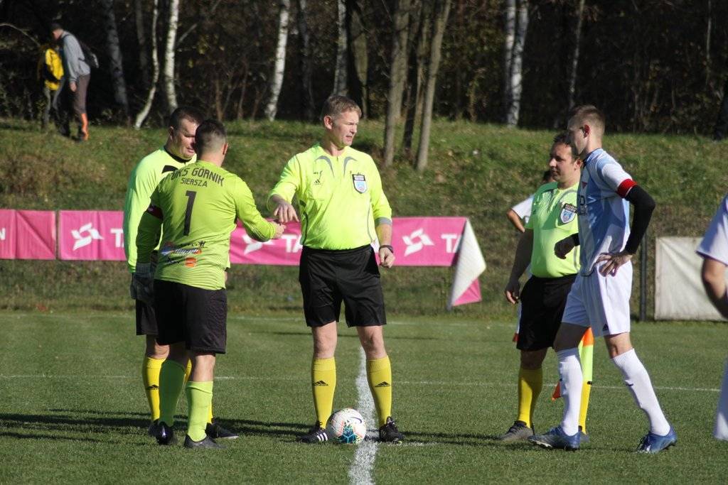 Rozegrane w minioną sobotę spotkanie było dla ciężkowickiego teamu niezwykle trudne. Co prawda jaworznianie byli zdecydowanym faworytem, ale kontuzje Marcina Psiody, Damiana Radomskiego oraz Mateusza Chrząścika, Dariusza Bosia i Doriana Prytki ( którzy ze względu na urazy pojawili się na murawie dopiero w drugiej połowie) sprawiły, że trener Pieczka miał nie lada orzech do zgryzienia. Tym bardziej, iż jego vis a vis Mieczysław Starniowski- przed laty mistrz Polski juniorów z rzeszowską „Resovią” oraz czołowy playmaker II i III ligowych boisk - zna doskonale swój fach trenerski i nastawił odpowiednio zawodników „Górnika”, którzy wyszli na sobotnie spotkanie szczególnie zmotywowani, pragnąc za wszelką cenę sprawić niespodziankę. Efektem przemyśleń trenera „Ciężkowianki” było zagranie po raz pierwszy w tym sezonie trójką stoperów i wahadłowymi młodzieżowcami Jakubami Łatą   i Gędłkiem (którzy przed sezonem zostali wypożyczeni ze „Szczakowianki”). Początek meczu to atak non stop  ciężkowiczan. Już w 4 minucie Jakub Łata trafił w poprzeczkę bramki strzeżonej przez Buziewicza. Zawodnicy Sierszy nie przestraszyli się jednak ciężkowickiej nawały i dzięki uważnej grze w defensywie sami zaczęli stopniowo przechodzić do groźnych kontrataków za sprawą szybkiego Mendeli. Od czegóż jednak są stałe fragmenty gry, które na treningach                        w Ciężkowicach są ćwiczone do znudzenia i podobnie jak                        w Luszowicach przyniosły pożądany efekt. Najpierw w 15 minucie Kuba Gędłek dośrodkował z rzutu rożnego z lewej strony zaś doświadczony Adrian Prażmowski- syn znakomitego w latach 70-tych i 80-tych napastnika „Ciężkowianki” Marka Prażmowskiego- precyzyjnym uderzeniem głową wyprowadził miejscowych na prowadzenie. Przez moment licznie przybyli kibice zaczęli się obawiać o zdrowie „Adiego”, który najpierw nie mógł wstać, a następnie bardzo mocno kuśtykał.          7 minut później z prawej strony z rzutu wolnego dośrodkował z kolei Łata, Mateusz Bulga wygrał powietrzny pojedynek zgrywając do Mariusza Biela zaś kapitan „Ciężkowianki” niczym Lewandowski             w spotkaniu z Albanią w Warszawie umieścił piłkę w siatce po raz drugi. Mimo okazji z obydwu stron do końca pierwszej połowy rezultat nie uległ zmianie. Po ostrej reprymendzie w przerwie trenera Starniowskiego ambitni goście przez pierwszy kwadrans niespodziewanie dominowali, zaś Artur Mendela i Rajmund Raźniak stanęli nawet oko w oko z Kotyzą. W tym czasie przyjezdni domagali się rzutu karnego za faul ich zdaniem przy piąstkowaniu miejscowego golkipera- który przy ekwilibrystycznej powietrznej interwencji zderzył się z napastnikiem gości Damianem Dziadzio- którego 2 minuty później zastąpił Mysza. Jednak z uwagi na brak VAR-u arbiter po konsultacji z asystentem nie przychylił się do ich reklamacji. Widząc co się święci szkoleniowiec „Ciężkowianki” wprowadził na plac gry najpierw w 60 minucie Bosia, Chrząścika               i Prytkę, zaś 10 minut później Dryję i Woźniaka. Dokonane roszady sprawiły, że „Ciężkowianka”  z wolna ponownie przejęła inicjatywę,          a okazje do wykazania się raz po raz miał teraz bramkarz „Górnika” Buziewicz. Na minutę przed końcem przyjezdni po dośrodkowaniu            i zamieszaniu na przedpolu mieli okazję na honorowe trafienie, jednak Daniel Kotyza pewnie wyjaśnił sytuację.