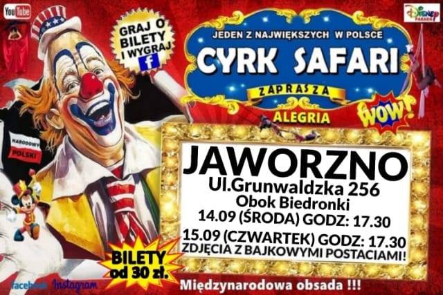 Cyrk Safari to jeden z największych cyrków w Polsce, który już w najbliższą środę i czwartek zaprezentuje się jaworznickiej widowni ze swoim nowym widowiskiem pt. Alegria, w którym udział biorą międzynarodowi artyści z Francji, Ukrainy, Szwecji, Rosji, Włoch oraz oczywiście z Polski.