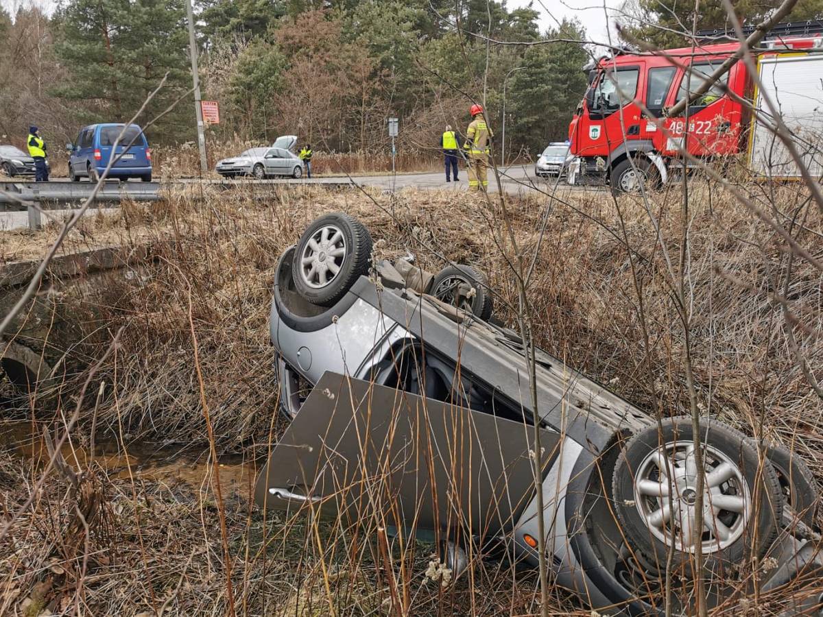 Do zdarzenia doszło dzisiaj, około godziny 12.30 w Jeleniu. Samochód marki Mini, kierujący się w stronę Tarki, wypadł z drogi, dachował i wpadł do pobliskiego cieku wodnego. Osoby znajdujące się w pojeździe zostały przetransportowane karetką pogotowia do szpitala.