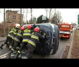 Piątkowy poranek okazał się pechowy dla kierowcy pojazdu marki Deaewoo. Samochód poruszał się od strony Góry Piasku. Na wysokości skrzyżowania ul. Jagiellońskiej z ul. Sobieskiego doszło do bocznego zderzenia samochodów osobowych. 18 -letni kierowca Nubiry aby uniknąć kolizji zjechał na chodnik, uderzył w skarpę i betonowy kosz na śmieci. To spowodowało wywrotkę auta. Na szczęście ani kierowcy ani pasażerce nic się nie stało.