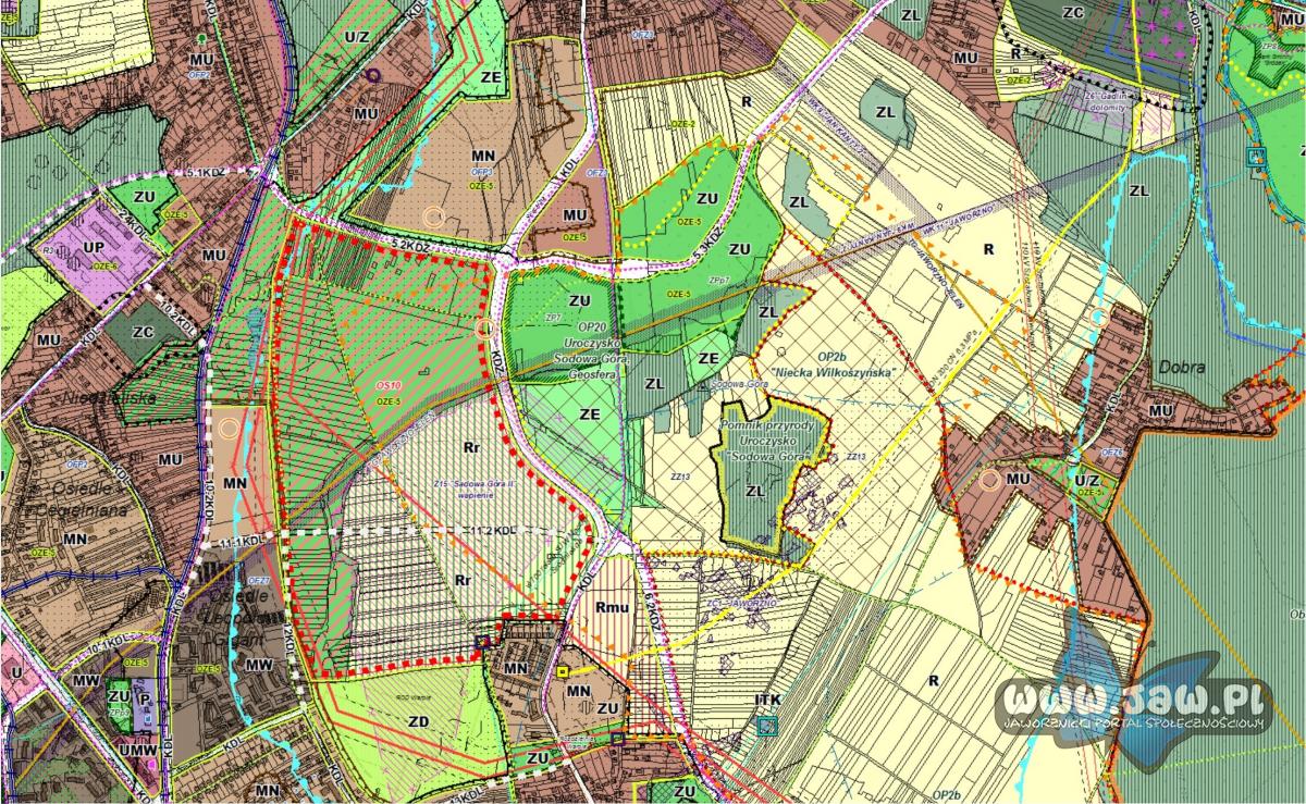 To m.in. wówczas „pola przy obwodnicy”, czyli teren od ulicy Św. Wojciecha do zabudowań Osiedla Sfera, z terenów oznaczonych w studium z 2015 roku jako obszary usług z zielenią urządzoną oraz obszary rolne - rezerwy dla funkcji rekreacji, zmieniono w 2020 roku na obszary zabudowy mieszkaniowej niskiej (od strony osiedla Sfera) oraz obszary usługowe, dodatkowo zaznaczone jako strategiczne obszary rozwojowe (od ulicy św. Wojciecha).
