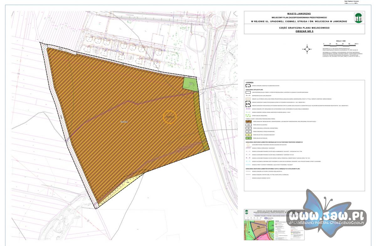 Na zdjęciu obszar nr 5 (około 16 hektarów przy ul. św. Wojciecha) z uchwały dotyczącej uchwalenia miejscowego planu zagospodarowania przestrzennego, jaka będzie podejmowana na najbliższej sesji w czwartek, 30 października w Jaworznie.