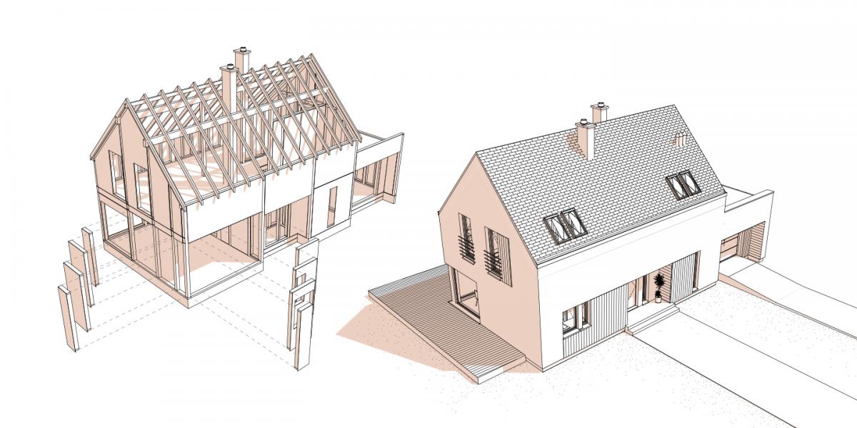 - Zależało nam na tym, aby nasza technologia była innowacyjna na każdym etapie. Dzięki autorskim rozwiązaniom 80 proc. zamawianego budynku zawsze dostępne jest od ręki, pozostałą część jesteśmy w stanie wyprodukować w ciągu trzech dni. Stworzona przez nas technologia pozwala na zaprojektowanie praktycznie każdej bryły budynku szkieletowego. Projektowany budynek opiera się na pięciu panelach, którymi architekt żongluje, tworząc projekt domu zgodnie z oczekiwaniami i wizją klienta - zwraca uwagę Radosław Bańkowski.