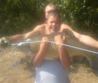 Złowiony amur waży ponad 15 kg! Biorąc pod uwagę, ze Krzysiu łowi dopiero od trzech miesięcy to bardzo duże osiągnięcie. Tego dnia przy łowisku towarzyszyli mu rodzice. Krzysia można spotkać na jego dwóch ulubionych łowiskach: na Sosinie i na Dziećkowiach. Pierwszą wędkę kupił za swoje oszczędności.
