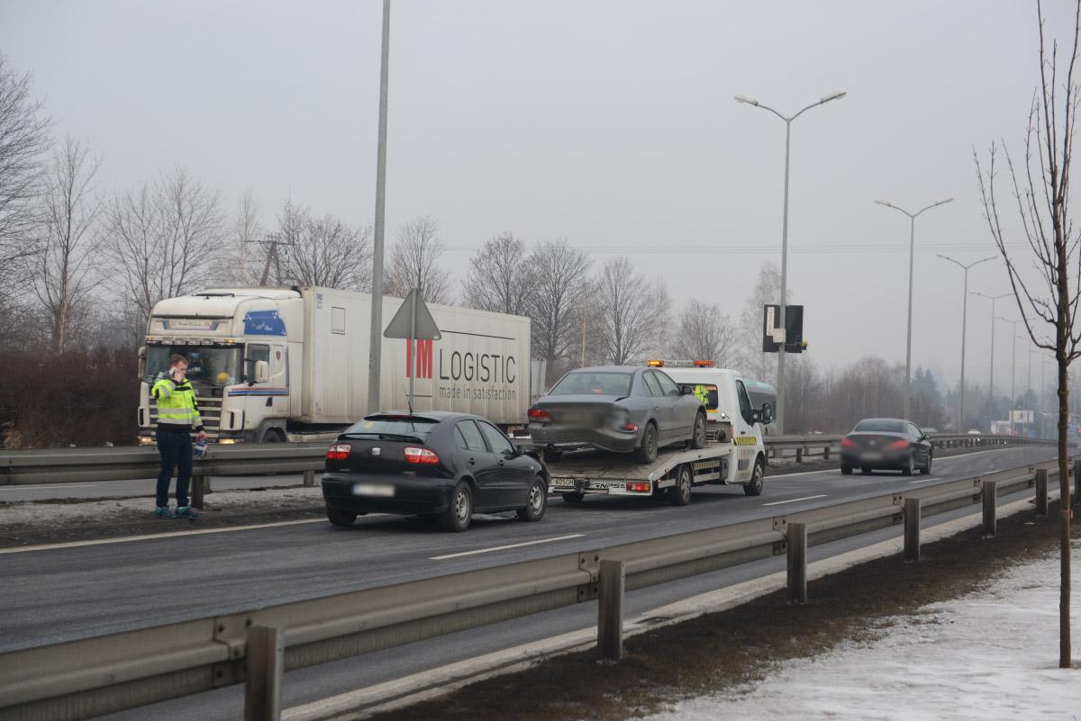 Najpierw przed godziną 9 doszło do kolizji z udziałem czterech pojazdów. Na ul. Krakowskiej gwałtownie zatrzymał się samochód dostawczy. Za nim zdążyły wyhamować peugeot i mitsubishi. Nie udało się to jednak kierowcy seata, który uderzył w tył mitsubishi. Doszło do efektu domina. 29-letni kierowca seata został ukarany mandatem w wysokości 400 zł i 6 punktami karnymi.