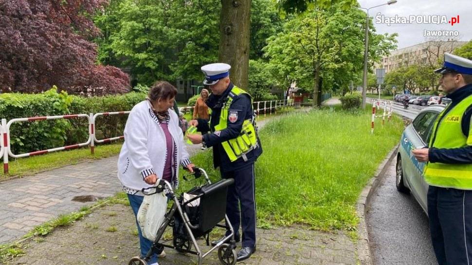 Foto: KMP Jaworzno[/caption]Policjanci z Wydziału Ruchu Drogowego wspólnie z kolegami z Wydziału Prewencji i Straży Miejskiej po raz kolejny przeprowadzili działania mające zwiększyć bezpieczeństwo pieszych na drogach naszego miasta. Liczne policyjne patrole w ramach akcji „Bezpieczny pieszy” sprawdzały zachowania uczestników ruchu drogowego w rejonach, gdzie najczęściej dochodzi do zdarzeń z udziałem pieszych. Policjanci rozdawali odblaski i rozmawiali z mieszkańcami miasta o szeroko rozumianym bezpieczeństwie w ruchu drogowym. Mundurowi zwracali szczególną uwagę na kierujących, którzy łamiąc przepisy ruchu drogowego, zagrażali bezpośrednio bezpieczeństwu pieszych.