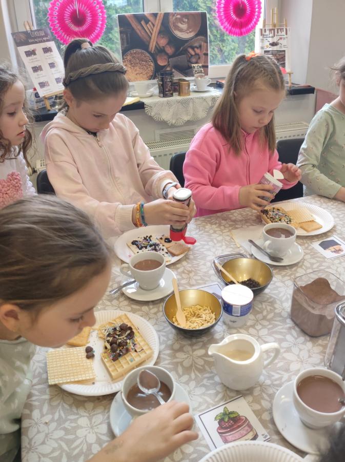 Na finał każde dziecko własnoręcznie przygotowało filiżankę czekolady i kreatywną czeko kanapkę na wafelku i herbatniku.