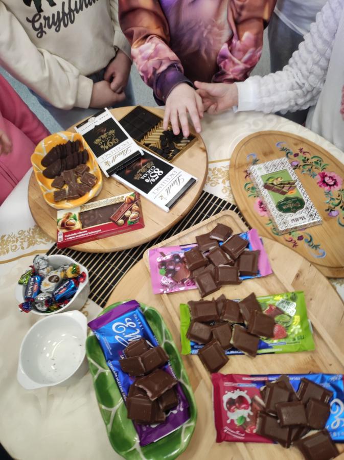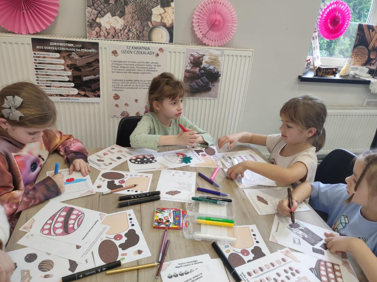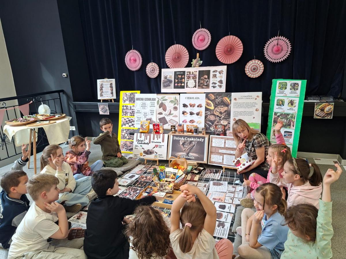 Czekolada dobra na wszystko... Pod takim hasłem przebiegły ostatnie zajęcia tematyczne dla najmłodszych w Klubie pod Skałką. Dzień czekolady to dobra okazja by połączyć naukę z zabawą. Sprzyjały temu zgromadzone publikacje, kolorowe infografiki oraz smaczne rekwizyty.