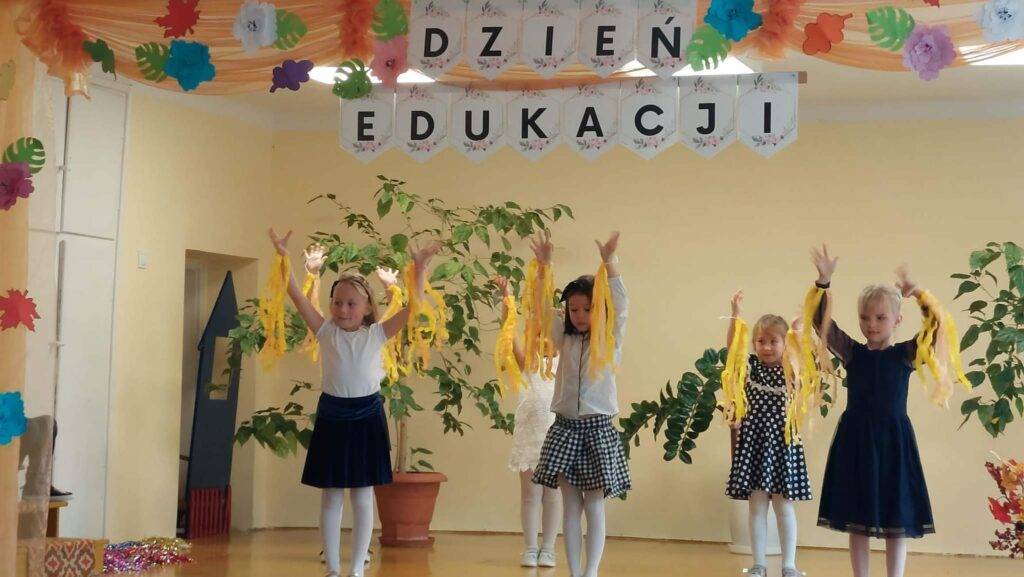 Po oficjalnym powitaniu i złożeniu życzeń, dzieci z Kółka Teatralnego oraz Kółka Tanecznego uświetniły spotkanie przygotowanymi występami. Były śpiewy, tańce, piękne wiersze, kwiaty, życzenia i podziękowania. Za część artystyczną przedszkolaki zostały nagrodzone gromkimi brawami. Dzień Edukacji Narodowej w przedszkolu to święto wszystkich tych, którzy oddają całe swoje serce, siłę i energię, aby dzieci czuły się w nim dobrze i bezpiecznie.