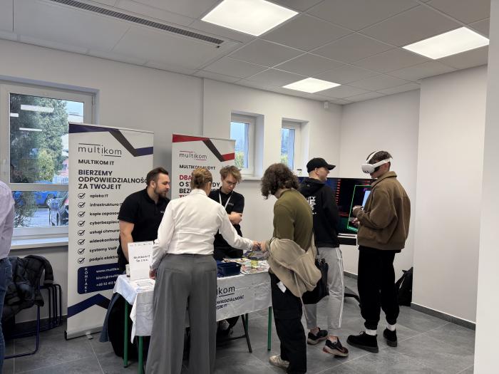 Jeśli chodzi o uczniów, to przyjmujemy uczniów na praktyki zawodowe. Kilka razy w roku uczniowie przychodzą do nas, żeby zobaczyć, jak wygląda praca informatyka, administratora systemów informatycznych. A dzisiaj na naszym stoisku właśnie chcemy pokazać taką próbkę. Przygotowaliśmy stoisko z VR, gdzie uczniowie mogą spróbować przejść cykl cyberbezpieczeństwa - mówi Magdalena Tora z MULTIKOM IT.